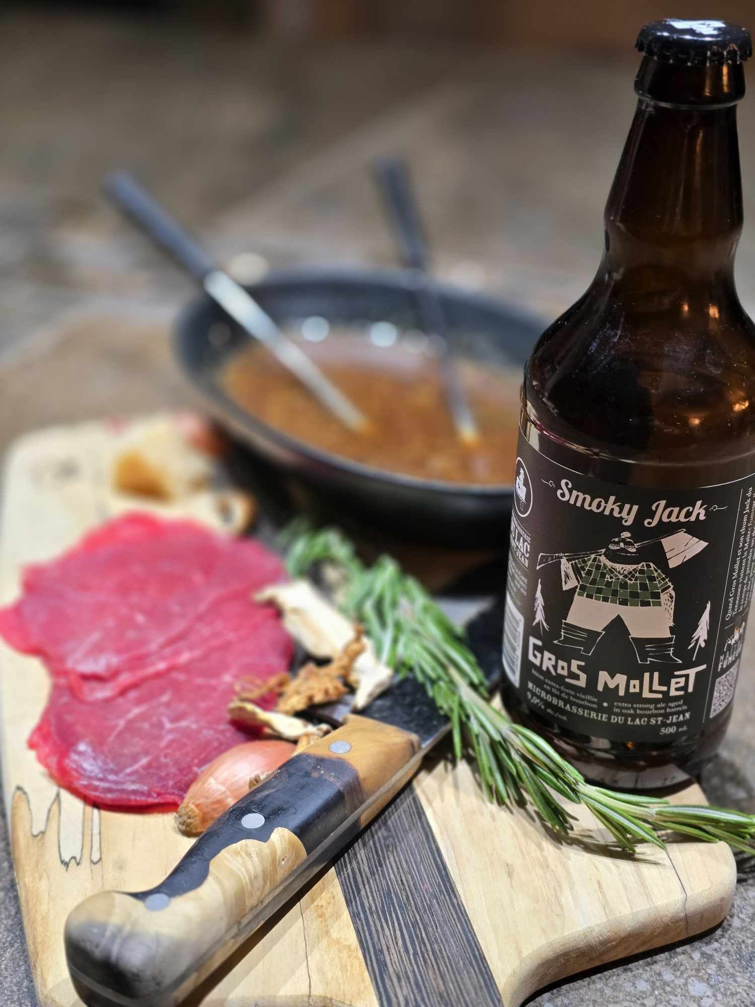 Envie d’une fondue qui sort de l’ordinaire et qui réchauffe autant l’ambiance que les papilles ? Ce bouillon forestier à la Smoky Jack de la Microbrasserie du Lac Saint-Jean est tout indiqué pour les longues soirées entre amis. Riche, profond et subtilement boisé, il transforme chaque bouchée en une petite aventure gourmande.