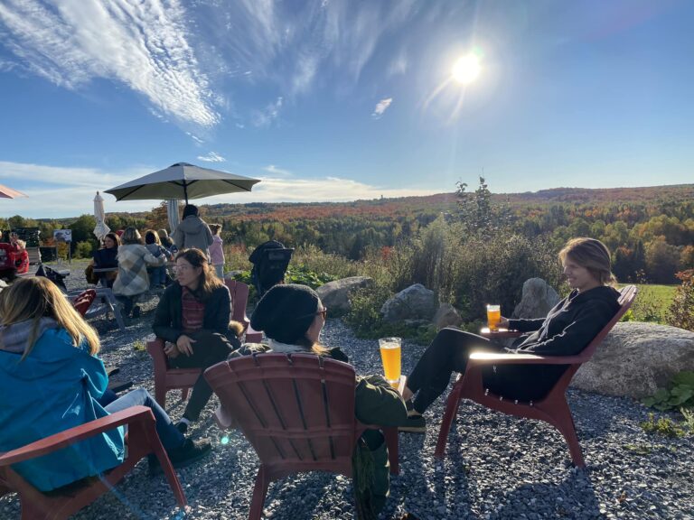 Notre lieu offre une ambiance conviviale, comme un chalet où l’on se retrouve entre amis ou en famille. Accessible à l’année, notre terrasse vous permet de profiter du soleil même en plein mois de mars, avec une vue imprenable sur les Appalaches. Les couchers de soleil y sont tout simplement divins.