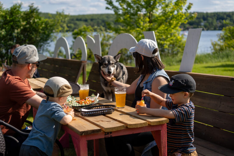 Verso Microbrasserie, c’est une histoire de famille et d’amitié. Un projet commun né de la passion de la bière et du plein air. Le choix du lieu n’est pas un hasard : Lac-Etchemin, c’est l’endroit où l’on vient pour se reposer, se ressourcer et passer du temps avec ceux qu’on aime. Tout a été pensé pour favoriser les échanges et le partage. Ici, les clients déplacent les chaises et les tables comme bon leur semble : pour se rassembler autour du feu, improviser une partie de pétanque ou former un grand groupe à l’heure du souper. La vaste terrasse et le grand terrain gazonné permettent aux enfants de courir et de jouer librement pendant que les parents savourent une bière. Et que dire de la proximité du lac : on peut venir en bateau ou en kayak… ou même se jeter à l’eau depuis le bout du quai !